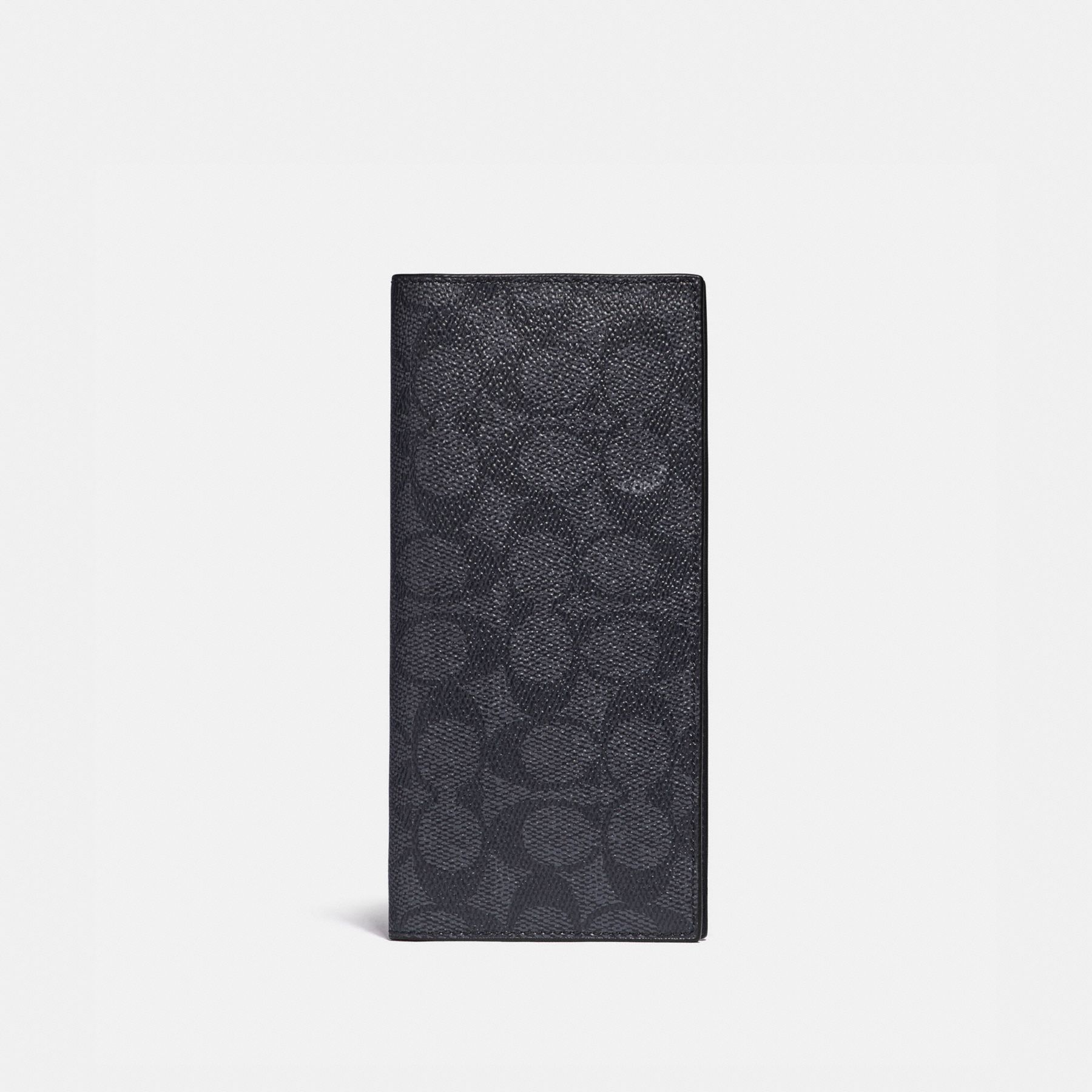 Designed to fit perfectly inside the pocket of an overcoat or blazer, this slim wallet is crafted of our Signature canvas and refined leather. It unfolds to reveal an impressively organized interior, complete with full-length bill compartments, multiple card slots and a zip compartment to keep coins, cash and receipts secure.