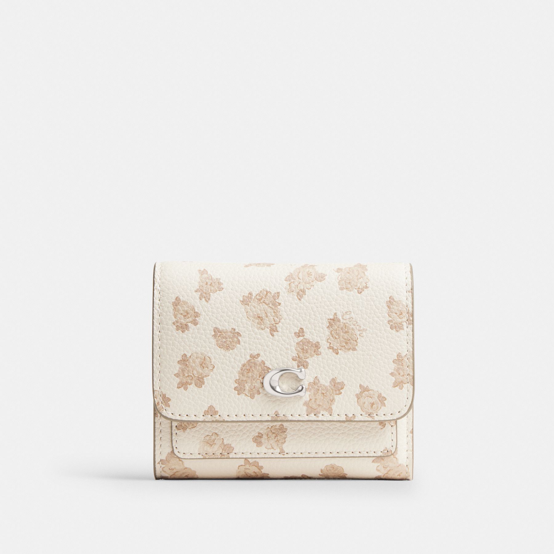 Streamlined and structured, our Mila is a perfectly organized wallet for everyday. Crafted of digitally printed leather featuring our tonal mini rose floral print and our Signature hardware, the compact tri-fold style features a convenient exterior zip coin pocket, six card slots, a full-length bill compartment and a hero card slot for easy access to an ID and most frequently used cards.