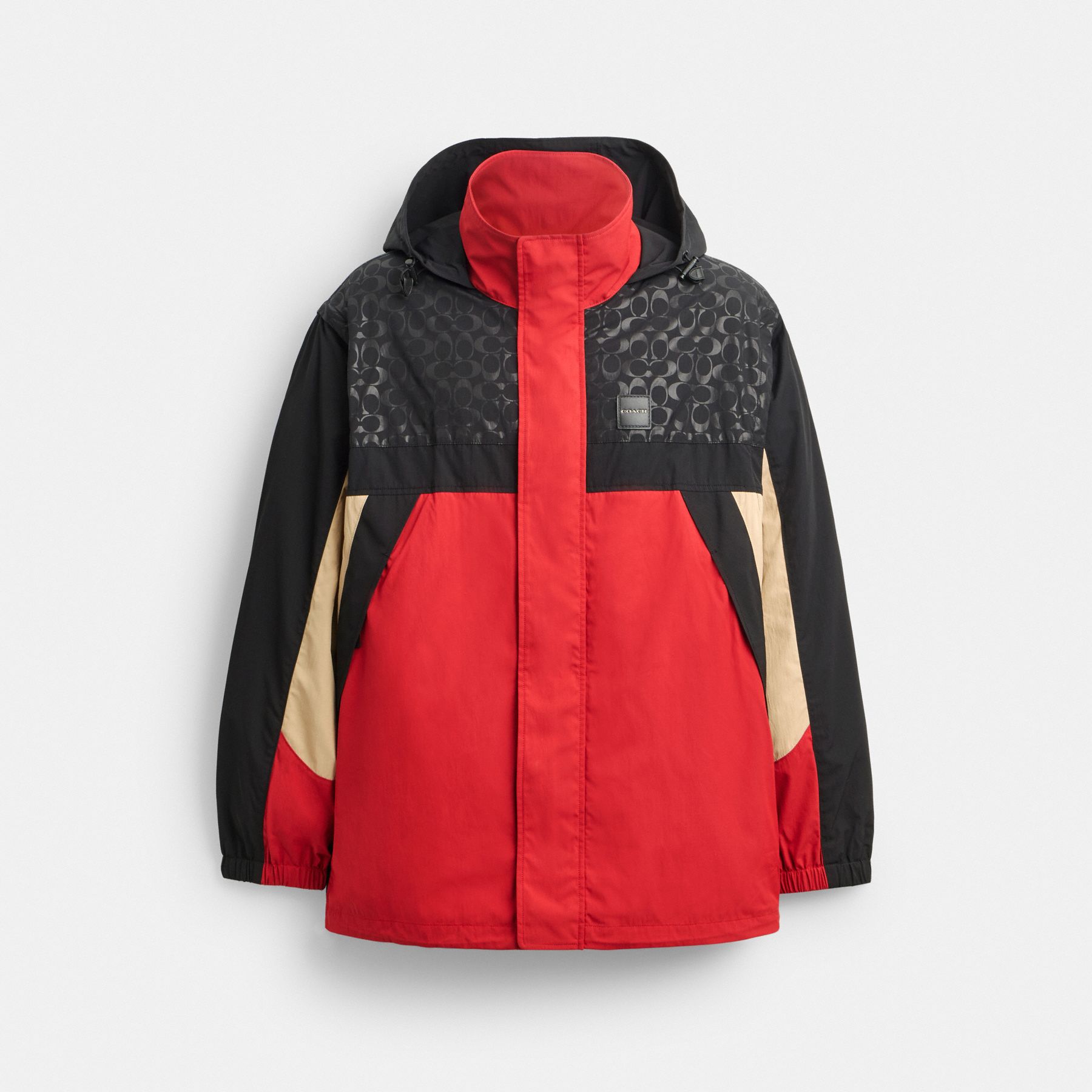 Two looks in one design, this colorblock windbreaker is a versatile style featuring zip-off sleeves to wear as a lightweight vest. Detailed with our Signature yoke and leather patch, it’s finished with a protective funnel neck and hood, zip and snap closures, adjustable bungees at the waist for the perfect fit and a convenient mix of zip and slip pockets.