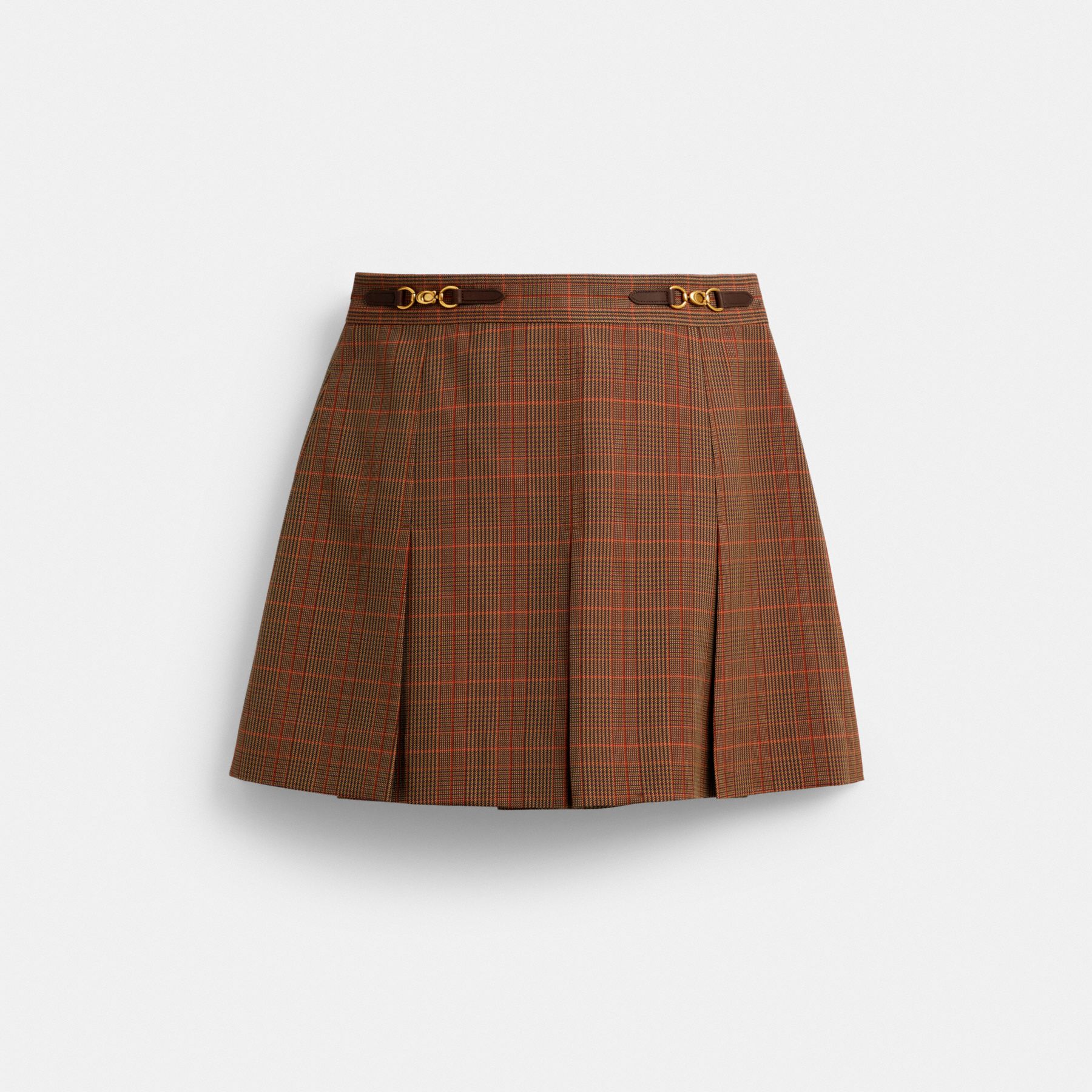 Featuring a one-of-a-kind plaid print custom-made by our Coach design team, this wool-blend mini skirt has an A-line silhouette with box pleats for added movement. It’s finished with a back zip closure and our sculpted C hardware for a subtle heritage touch. Pair with the matching jacket for a coordinated look.