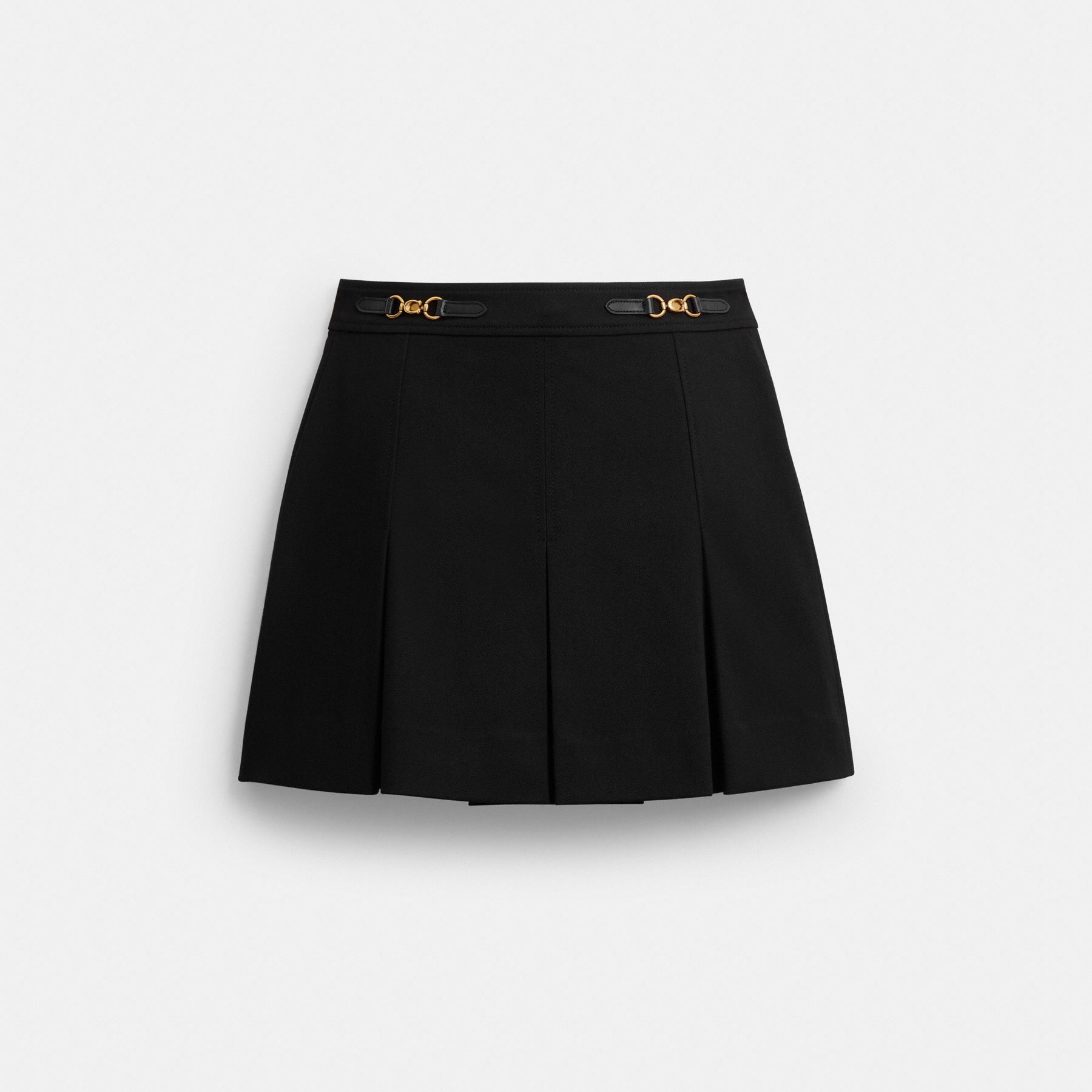 Featuring our sculpted C hardware at the waist, this recycled polyester-blend mini skirt is designed with box pleats for fun, easy movement. The A-line silhouette is finished with a back zip closure.