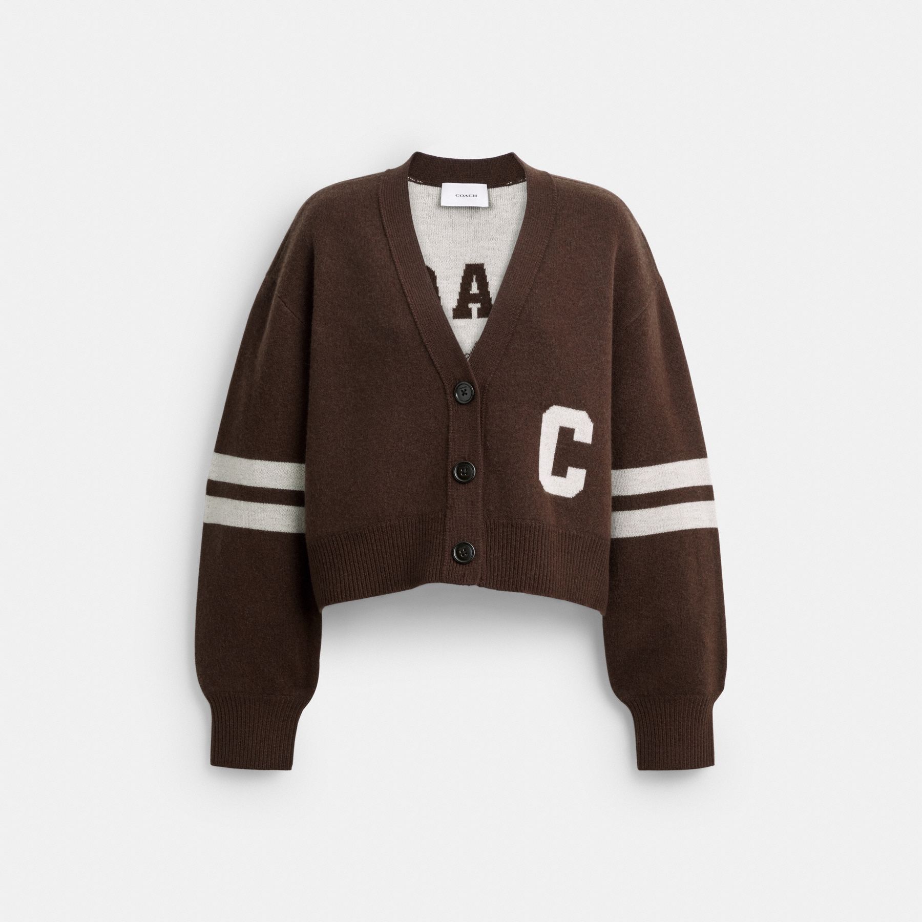 Give me a C. Inspired by sporty vintage styles, this cardigan is crafted in a soft blend of wool and cashmere. Detailed with our varsity “C" on the front and our Horse and Carriage graphic at the back, the cropped, boxy silhouette is finished with a V-neckline and our Varsity Stripe at the sleeves.