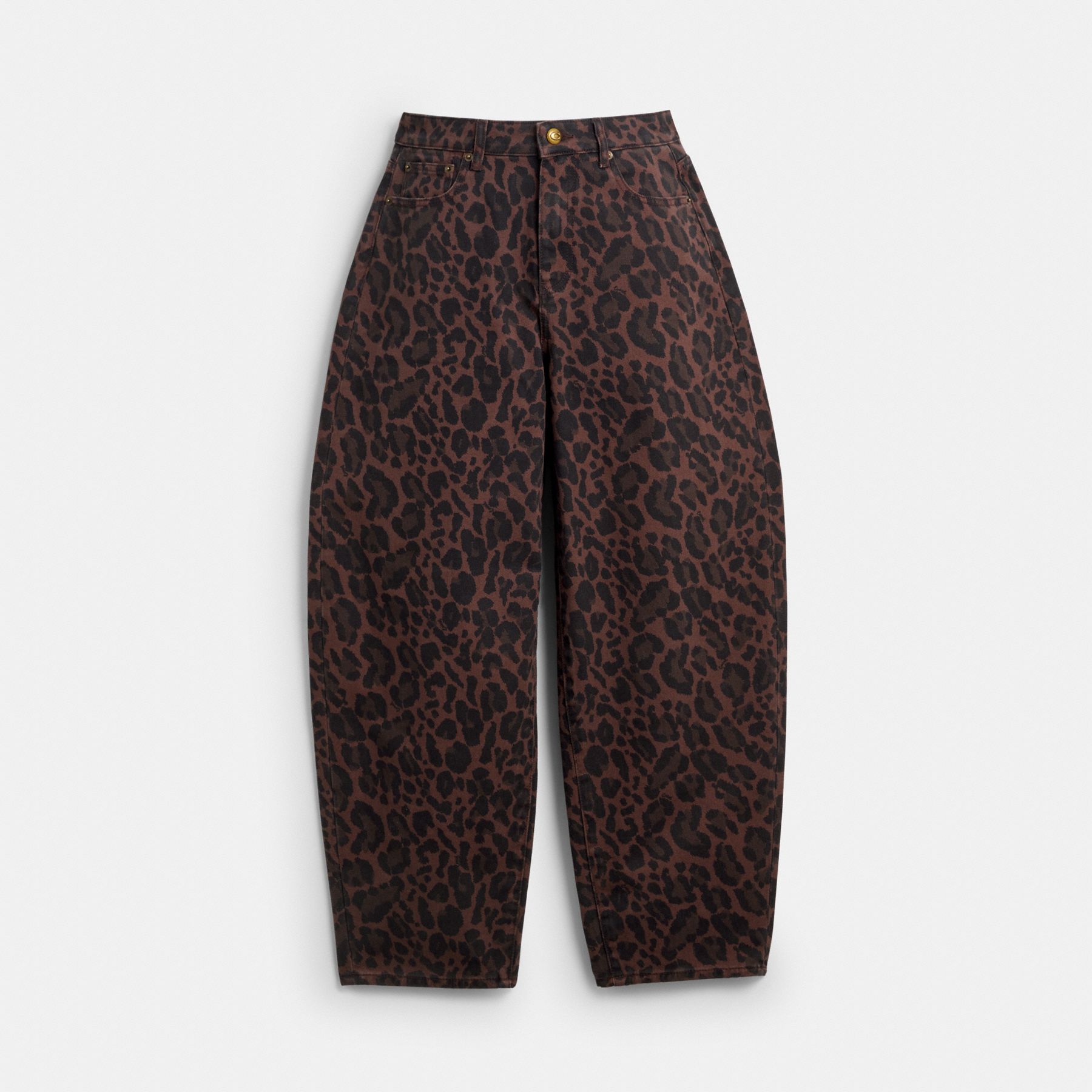 Featuring a bold leopard print, these denim jeans are crafted of organic cotton made without the use of harmful chemicals and pesticides. Designed with a rounded barrel-leg silhouette, the high-waisted style offers a relaxed fit and is finished with our Coach leather patch at the back for a heritage touch.