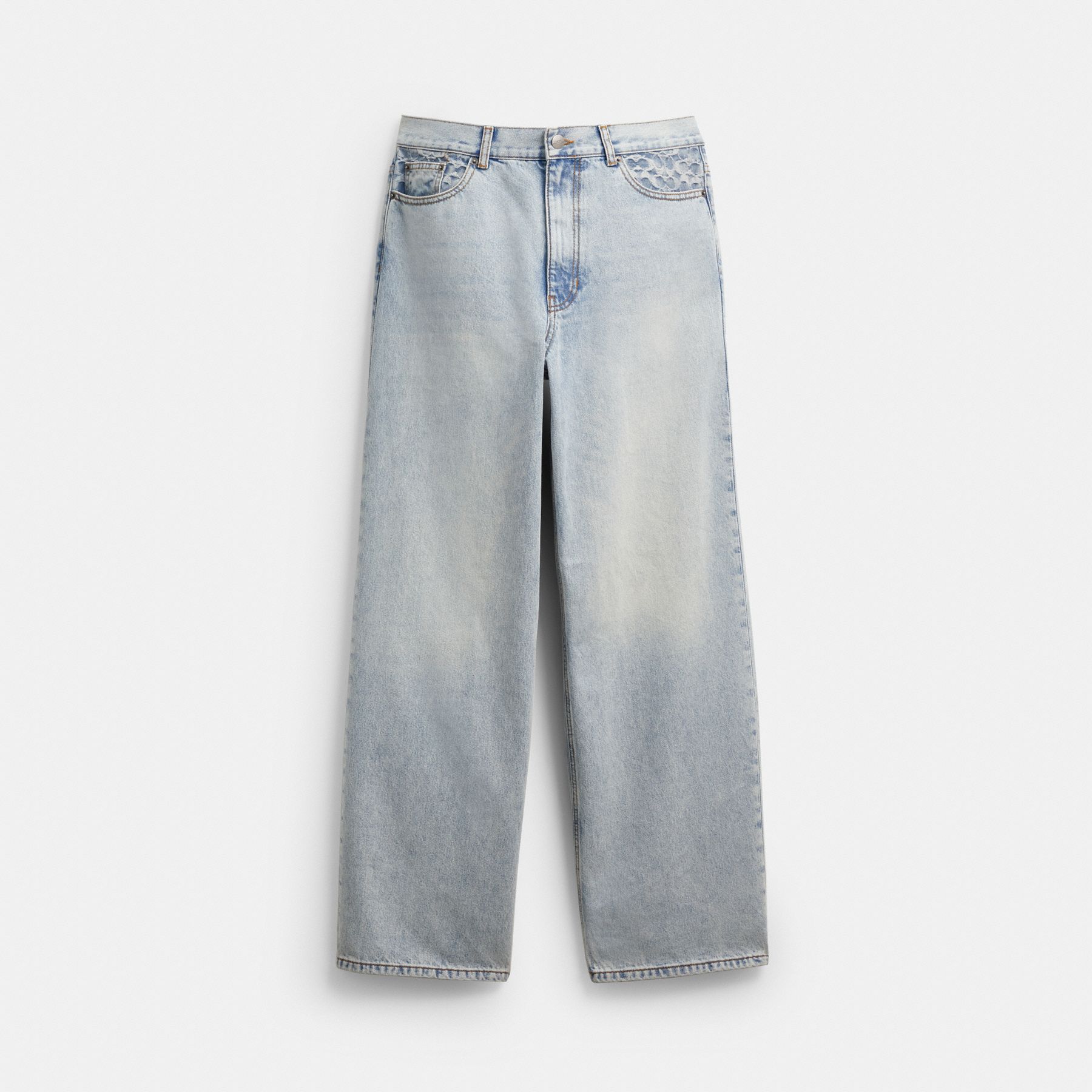 Inspired by oversized silhouettes from the 1990s, these loose, baggy-fit denim jeans are crafted of organic cotton made without the use of harmful chemicals and pesticides. The effortless style is detailed with our Signature at the pockets and a leather patch at the back in a nod to our heritage.