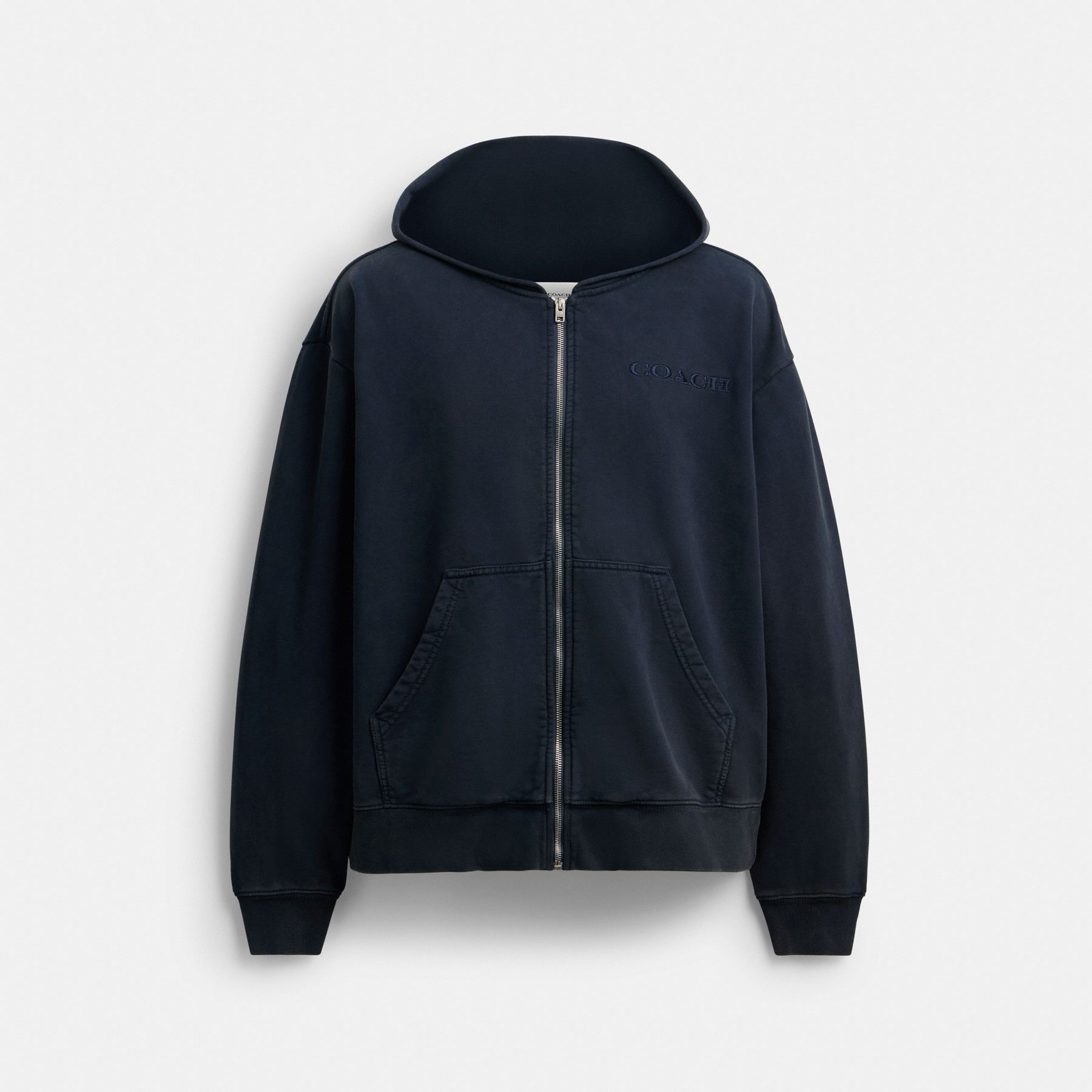 A laid-back style for any season, this soft cotton hoodie is garment-dyed for a vintage, lived-in look. Featuring a metal zip closure and split kangaroo pocket, the relaxed-fit silhouette is finished with our tonal Coach embroidery for a subtle heritage touch.