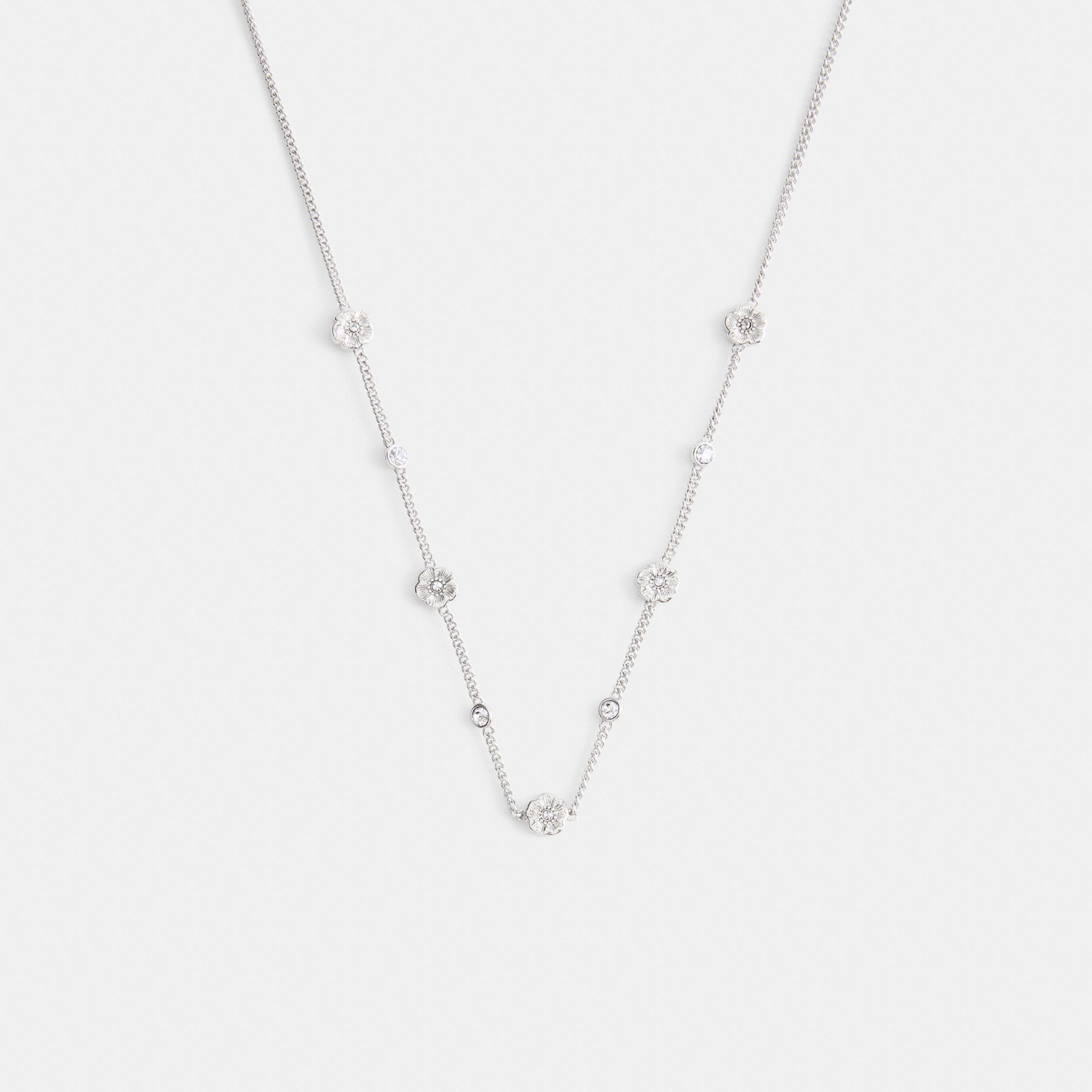This polished station necklace is accented with our Tea Rose motif and sparkling crystals. Detailed with our diminutive hangtag and Signature charm, it’s finished with an adjustable clasp closure to wear long or short.